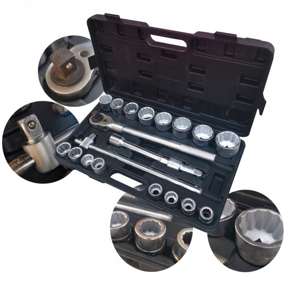 Dimensiuni XXL: Setul conține gedoras de dimensiuni 19-50, optime pentru lucrul la camioane și alte vehicule mai mari.