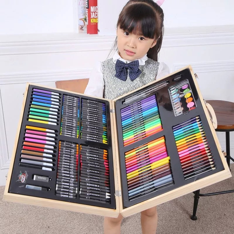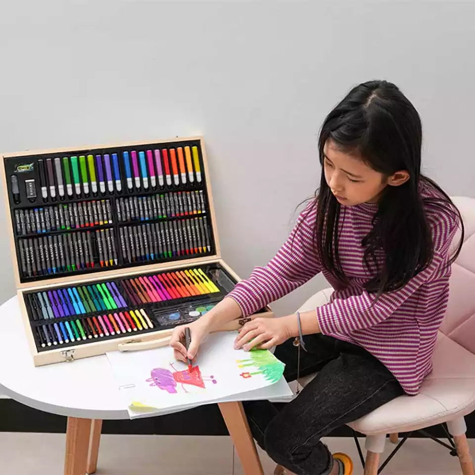 🟩 Set de artă de 180 de piese într-o cutie de lemn