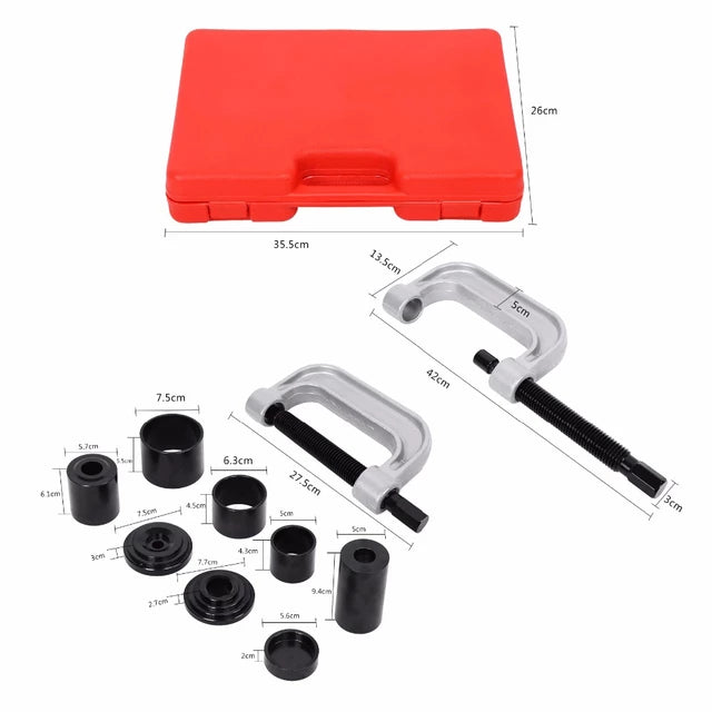 Setul de articulație sferică și presă cu cadru C este excelent pentru îndepărtarea și instalarea pieselor prin presare, cum ar fi articulațiile sferice, articulațiile universale și știfturile de ancorare a frânei de camion.