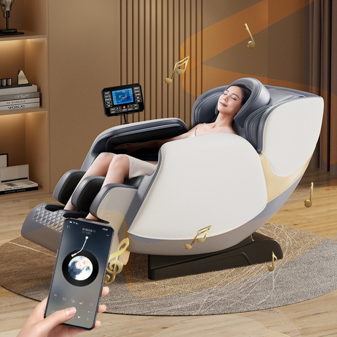 Experimentat relaxare de lux la domiciliu sau la centrul de wellness de-a lungul Fotoliu de masaj FUNXI 4 D Zero Gravity. Acest fotoliu combină masaj cu aer, tehnici Shiatsu și manipulator 4D pentru masaj complet al întregului corp – de la gât și umăr până la spate, talie, coapse și picioare. Poziția Zero Gravity eliberează presiunea asupra coloanei vertebrale și oferă o senzație de relaxare bestemică, în timp ce este încorporată Difuzoare Bluetooth acestea vă permit să vă bucurați de masaj cu muzica preferată.