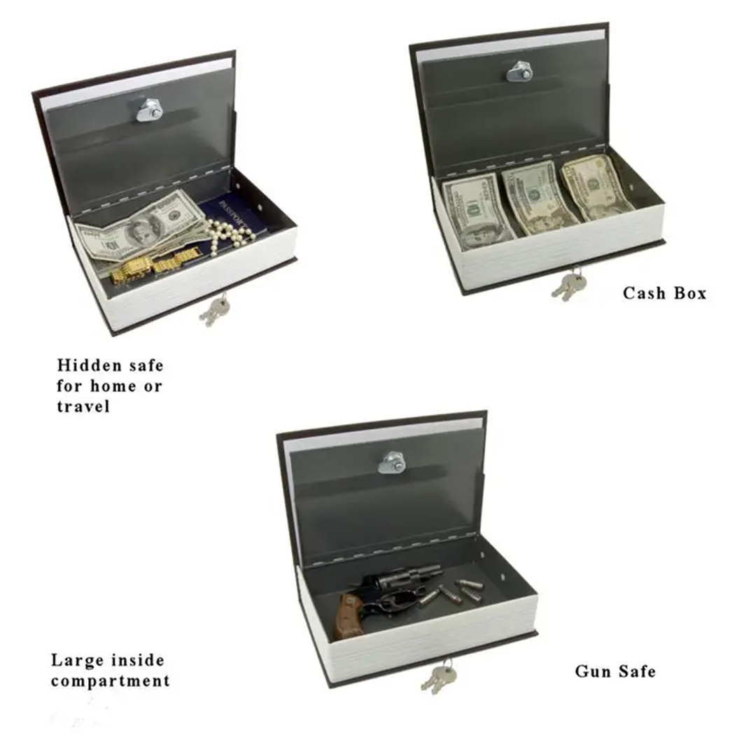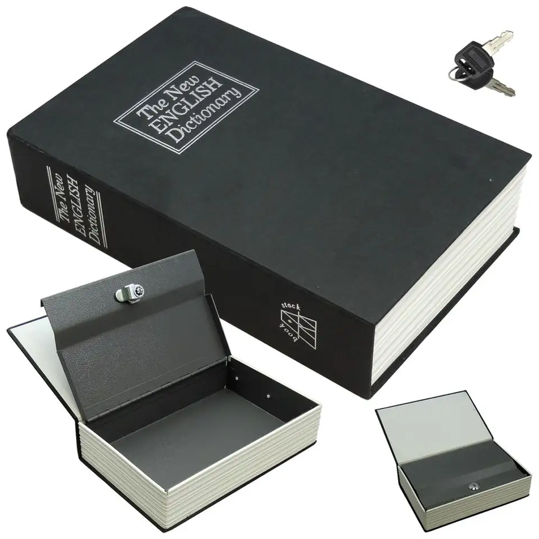 🔐 Protejați-vă obiectele de valoare într-un mod discret cu această carte în siguranță! Arată ca o carte adevărată și se va potrivi cu ușurință cu celelalte cărți de pe raftul tău. Opțiunea perfectă pentru păstrarea în siguranță a articolelor importante acasă sau în călătorie. Fabricat din material metalic robust, acest seif vine cu două chei. Există suficient spațiu în interior pentru a depozita bijuterii, numerar, cărți de credit sau alte obiecte importante pe care doriți să le ascundeți. Securitatea valorilor tale este acum în mâinile tale!