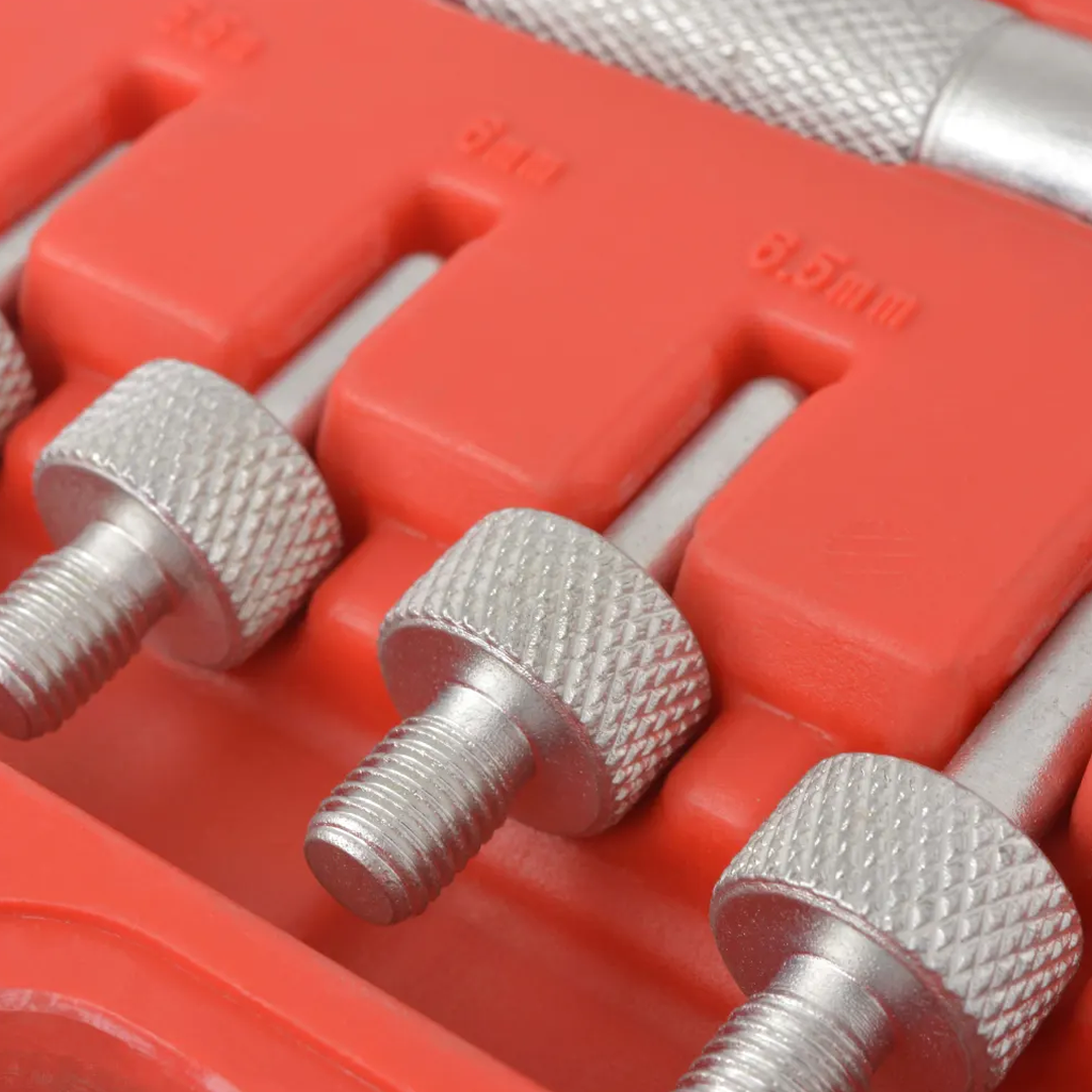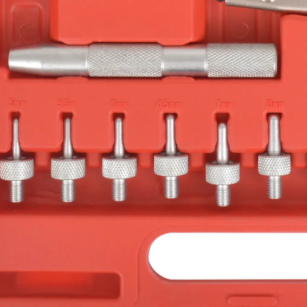 Specificații: 🔧 Clești de etanșare: 270 mm 🔩 Adaptoare de etanșare: 5 mm, 5,5 mm, 6 mm, 6,5 mm, 7 mm, 8 mm și 3/8" 🔒 Piulițe pentru adâncime supape: 10,8-14,8 mm (diametru) 📦 Cutie depozitare: 33 x 25 x 7 cm (L x l x A) ⚖️ Greutate: 1,8 kg