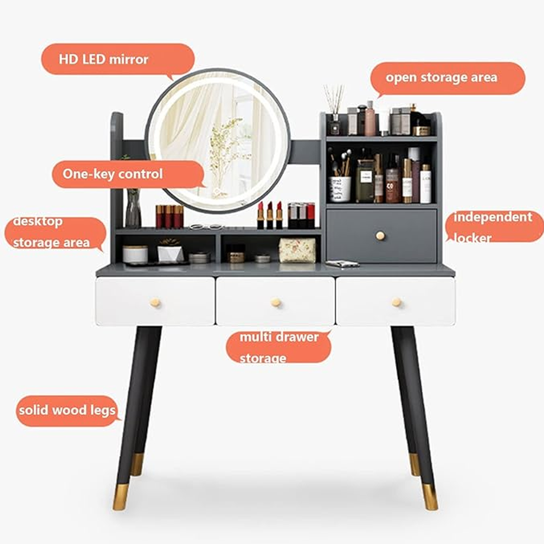 - Organizare inteligentă: Mai multe sertare și compartimente permit organizarea ușoară a produselor cosmetice, parfumurilor și altor necesități.