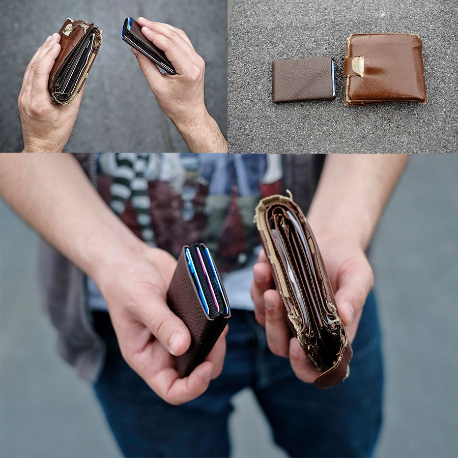 Este proiectat să includă un compartiment pentru facturi șiun compartiment separat pentru carduridin care avem din ce în ce mai multe (carduri de credit, debit, reduceri, carduri de fidelitate etc.).