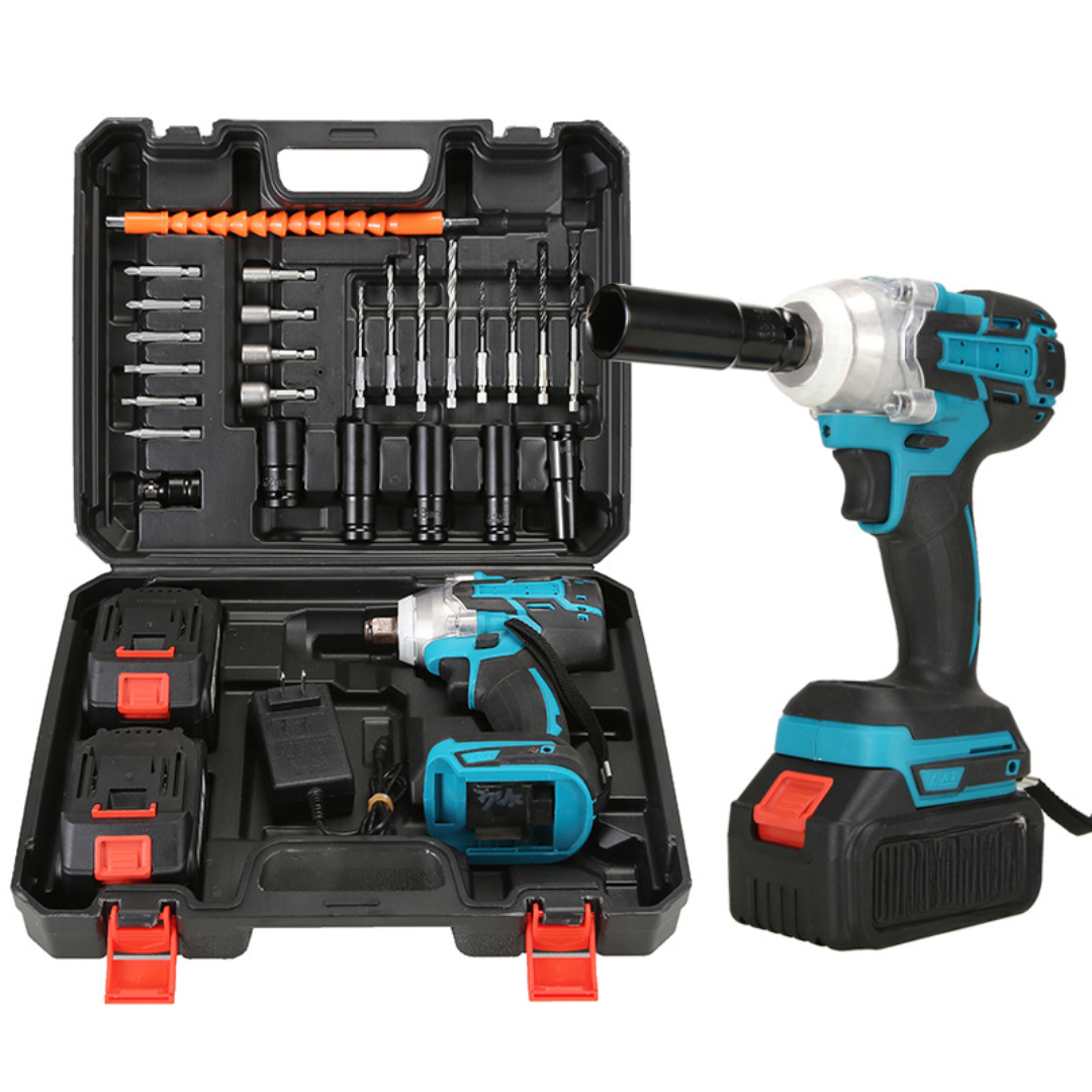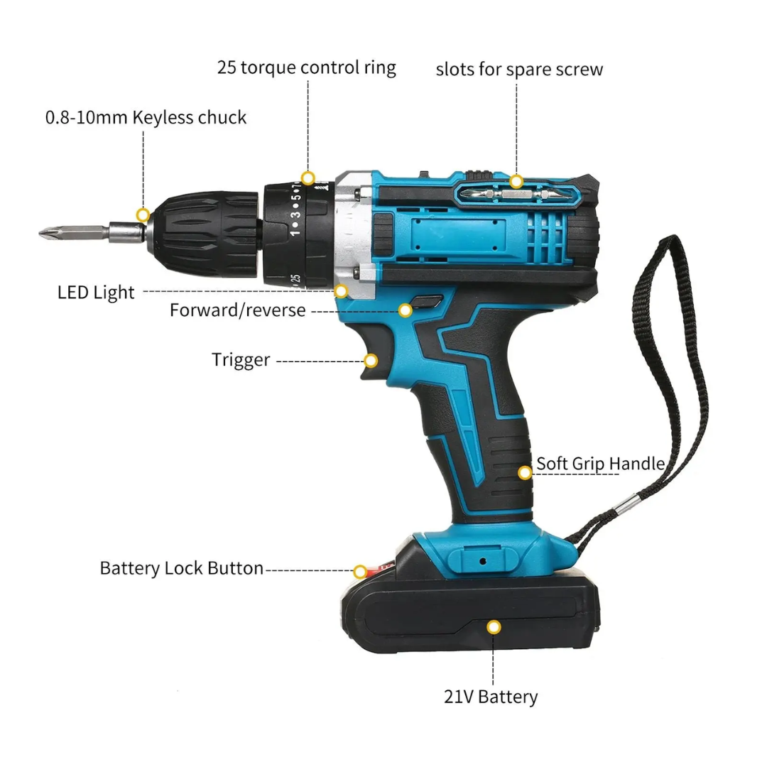 Eficient și puternic 42 V impact de foraj acută pentru toată munca din casă şi din jurul casei. S cap metalic de până la 13 mm,, două viteze și funcția ciocan, găuriți lemnul, metalul și peretele cu ușurință. Vin în pachet două baterii 5,0 Ah pentru munca continuă a acelui set de 24 de continuare.