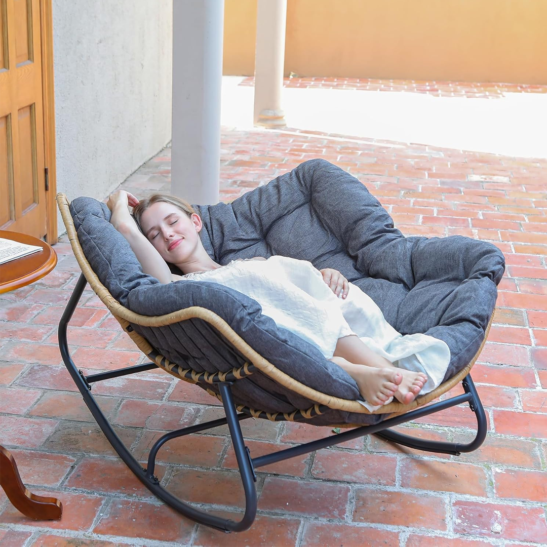 Balansarea usoara reduce stresul si tensiunea, oferind un sentiment de relaxare completa. Acest fotoliu este alegerea perfectă pentru cei care doresc să se bucure de momente pașnice, adăugând în același timp o piesă elegantă de mobilier în spațiul lor.